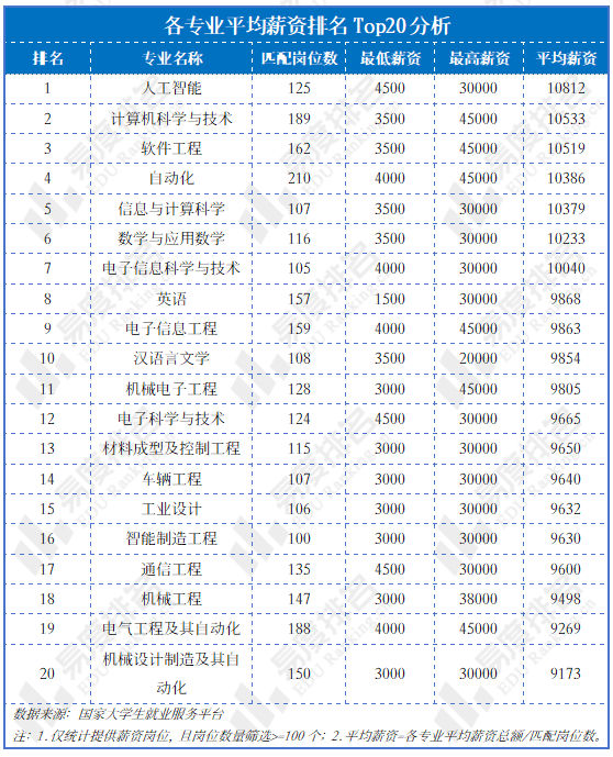 正在供给薪资的岗亭中,薪资前20名几乎被工科(特别是电子消息类、机械类)和数理根本学科垄断。此中人工智能、计较机科学取手艺、软件工程包办平均薪资前三名。这取其正在宏不雅(行业薪酬第一)、中不雅(高聘请人数占比)的地位完全婚配,是高价值-高需求-高薪酬的完满闭环。