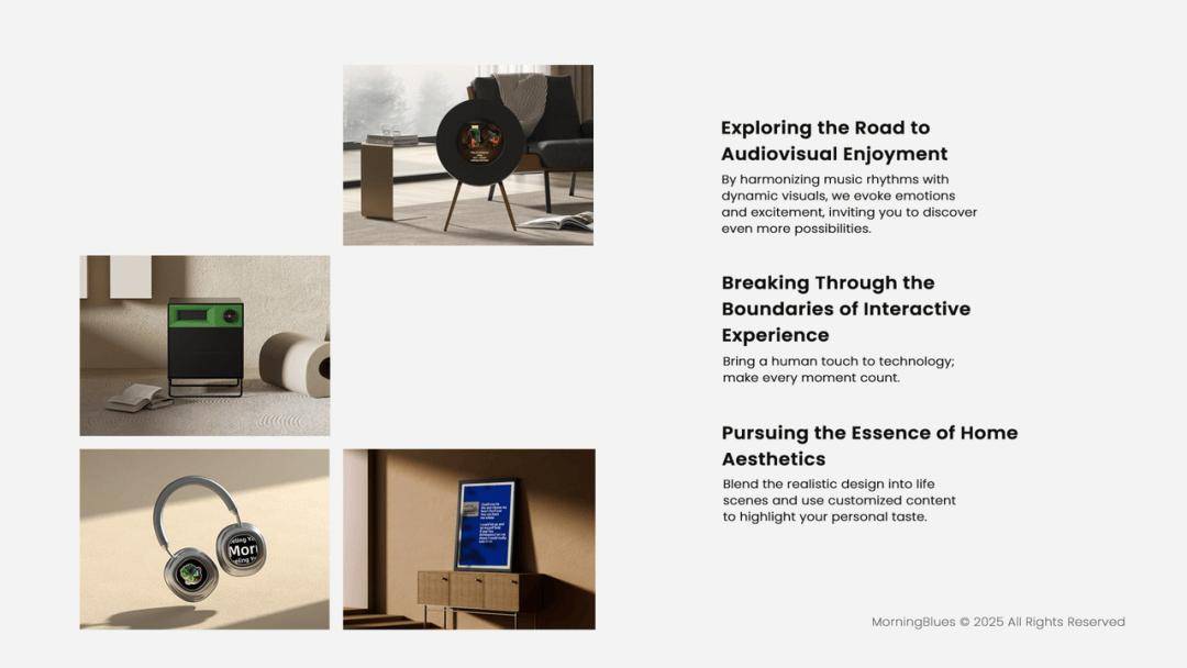 MorningBlues专注于将视觉取音乐融合,打破单一感官体验。它不只面向小我穿戴,也延长抵家居,焦点是让音乐的美学超越听觉本身,通过多样化的交互体例取空间呈现。产物设想兼顾艺术性取人道化软件交互,硬件开辟则逃求专业音质,大都搭载Jamo手艺保障音效质量,并配套专属APP实现个性化定制、设备节制及OTA升级。整套VWS系列不只满脚听觉体验,更融入家居美学、感情疗愈和社交文娱等多元场景,让科技、艺术取糊口天然融合。正在CES的现场,MorningBlues的就像一个“活的艺术安拆”,吸引不雅众驻脚,不只是听音乐,而是正在看、正在感触感染、正在表达。